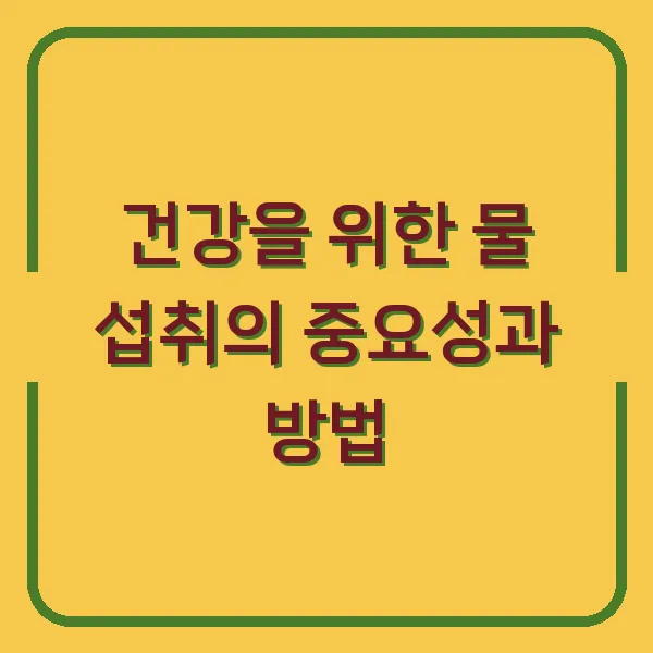 물은 우리의 건강을 유지하는 데 중요한 역할을 합니다. 적절한 물 섭취는 신체의 기능을 최적화하고, 여러 질병을 예방할 수 있습니다.